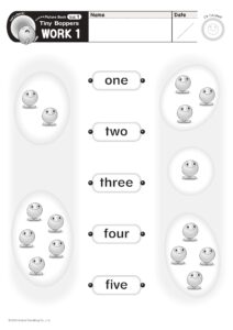 ワークシート6枚と、Color chart/ この絵本でならうこと/ ぬりえ/ 絵本の日本語訳 の計10枚が一連PDFで繋がっています。