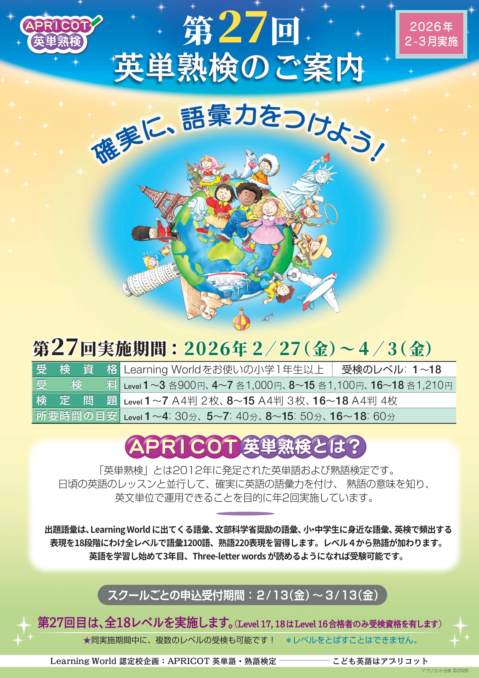第27回英単熟検実施期間:2026年2/27(金)~4/3(金)