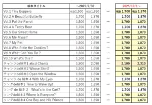 2025/10/1~APRICOT絵本は1,870円(税込)になります。*abcd chantsのみ2,310円。