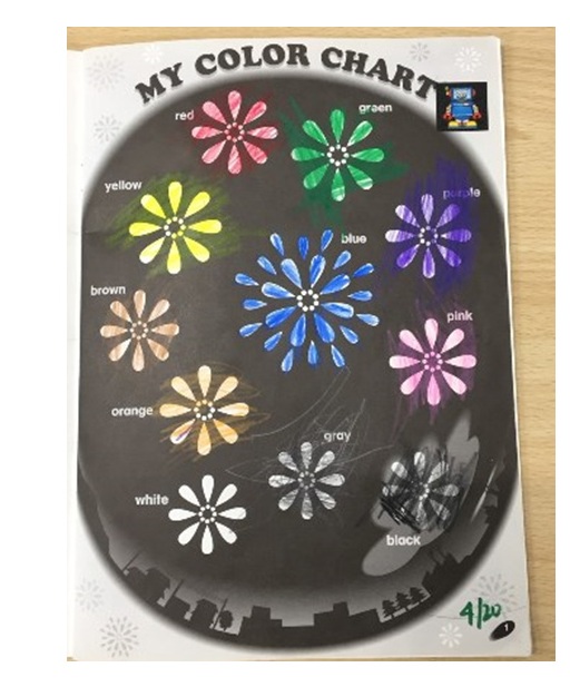 自己紹介/じゃんけん/数/色/形/足りないものをさがす/同じ絵をさがす/迷路/動物/家族/前置詞/食べ物/野菜/感情を表すことば など盛りだくさん。