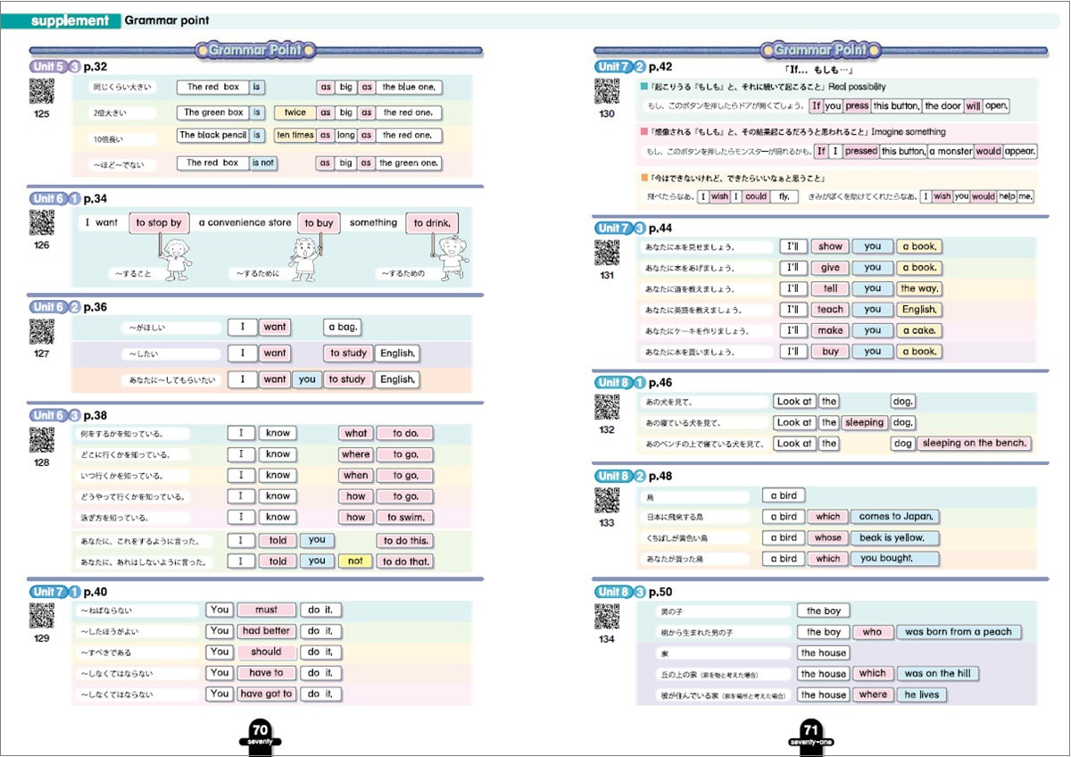 ・左ページのGrammar Pointの音声(教師用CDの音声)もQRから聞けるようになりました。